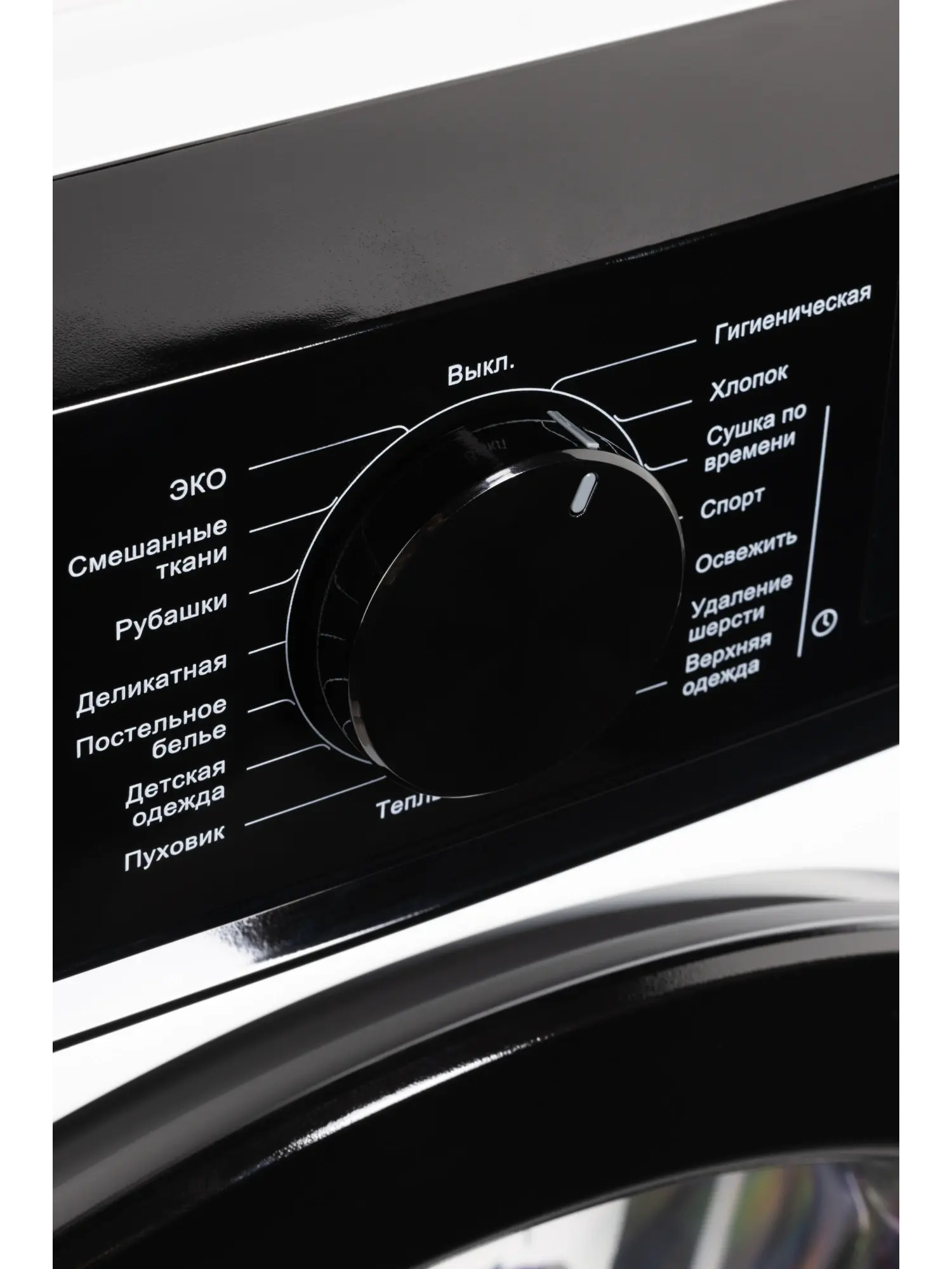 Управлять сушкой просто: интуитивная панель, возможность отложенного старта до 24 часов, индикация наполнения бака и очистки фильтра, а также блокировка от детей делают эксплуатацию максимально комфортной и безопасной. А если вы забыли что-то добавить — не проблема, вещи можно докладывать даже во время работы.