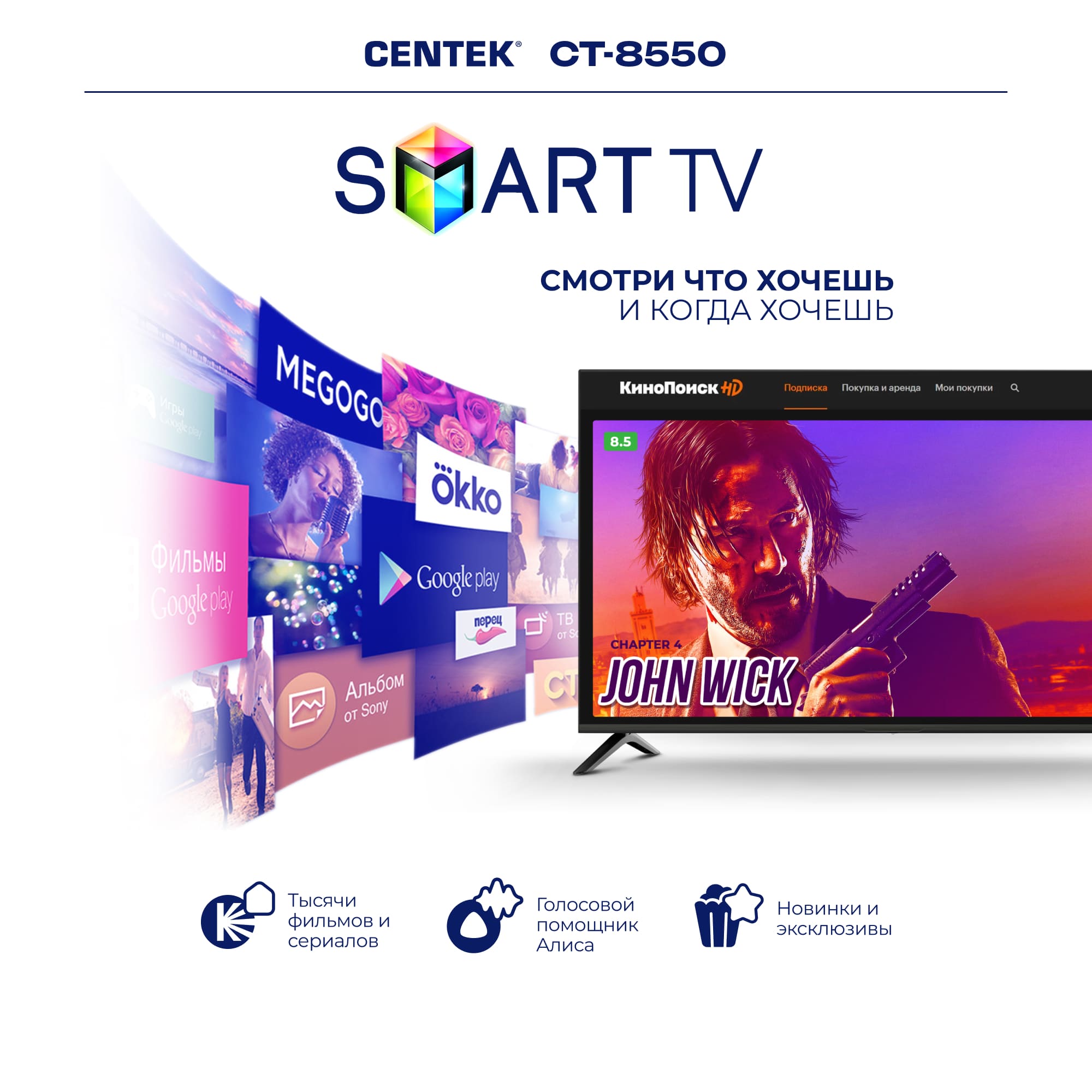 Телевизор CT-8550 ; Макс. разрешение, 3840х2160 ; Соотношение сторон, 16:9 ; Контрастность, 5000:1 ; Яркость, 250 кд/м2 ; Частота обновления, 60 Гц. HDR