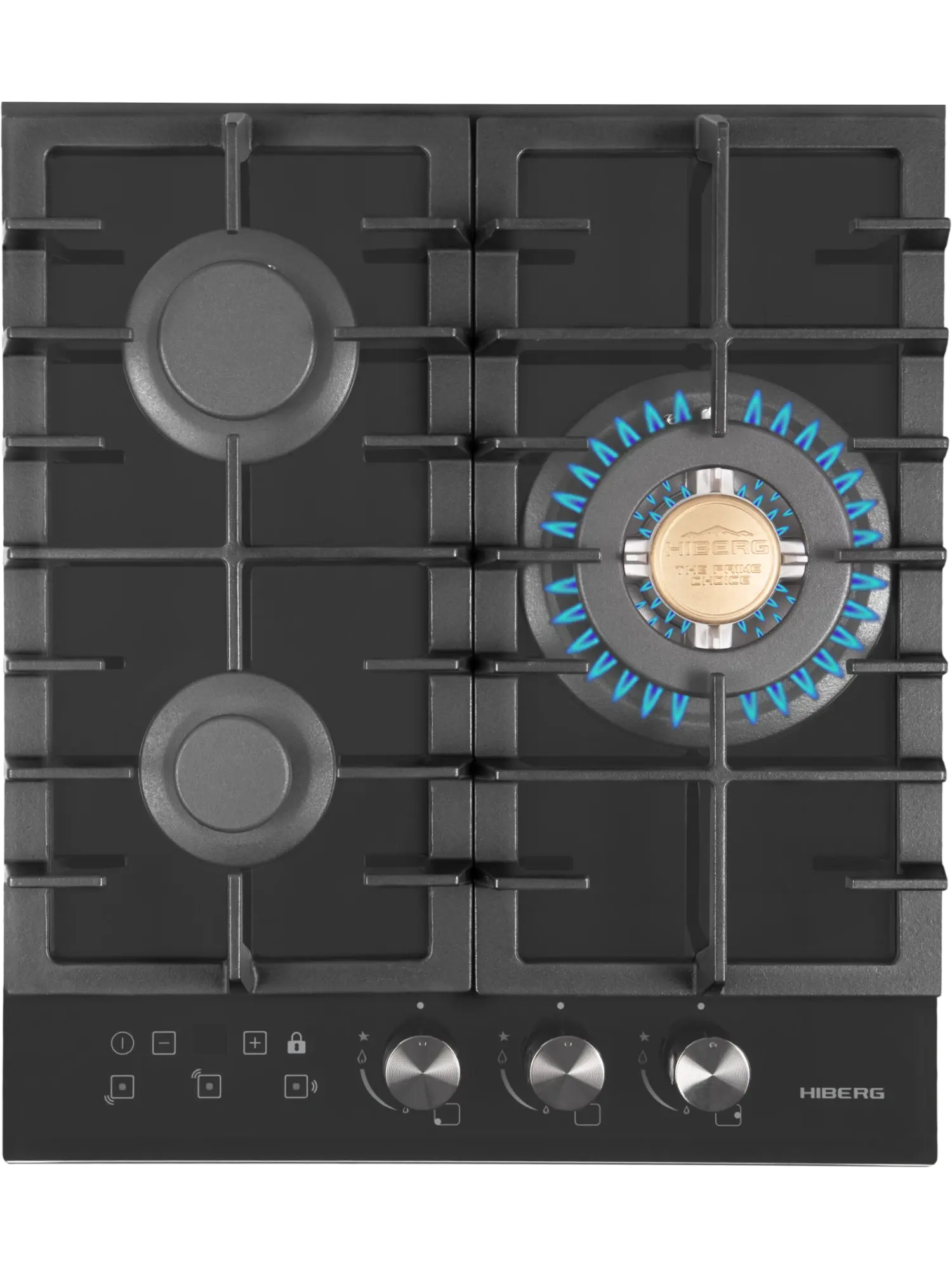 Встраиваемая газовая варочная поверхность HIBERG VM 4535 B из закаленного стекла в черном цвете, оснащена 3 конфорками и функциями: автоматический «электророзжиг», «газ-контроль» и сенсорный таймер отключения газа. В комплект варочной поверхности входит дополнительный комплект ручек регуляторов в ретро-стиле.