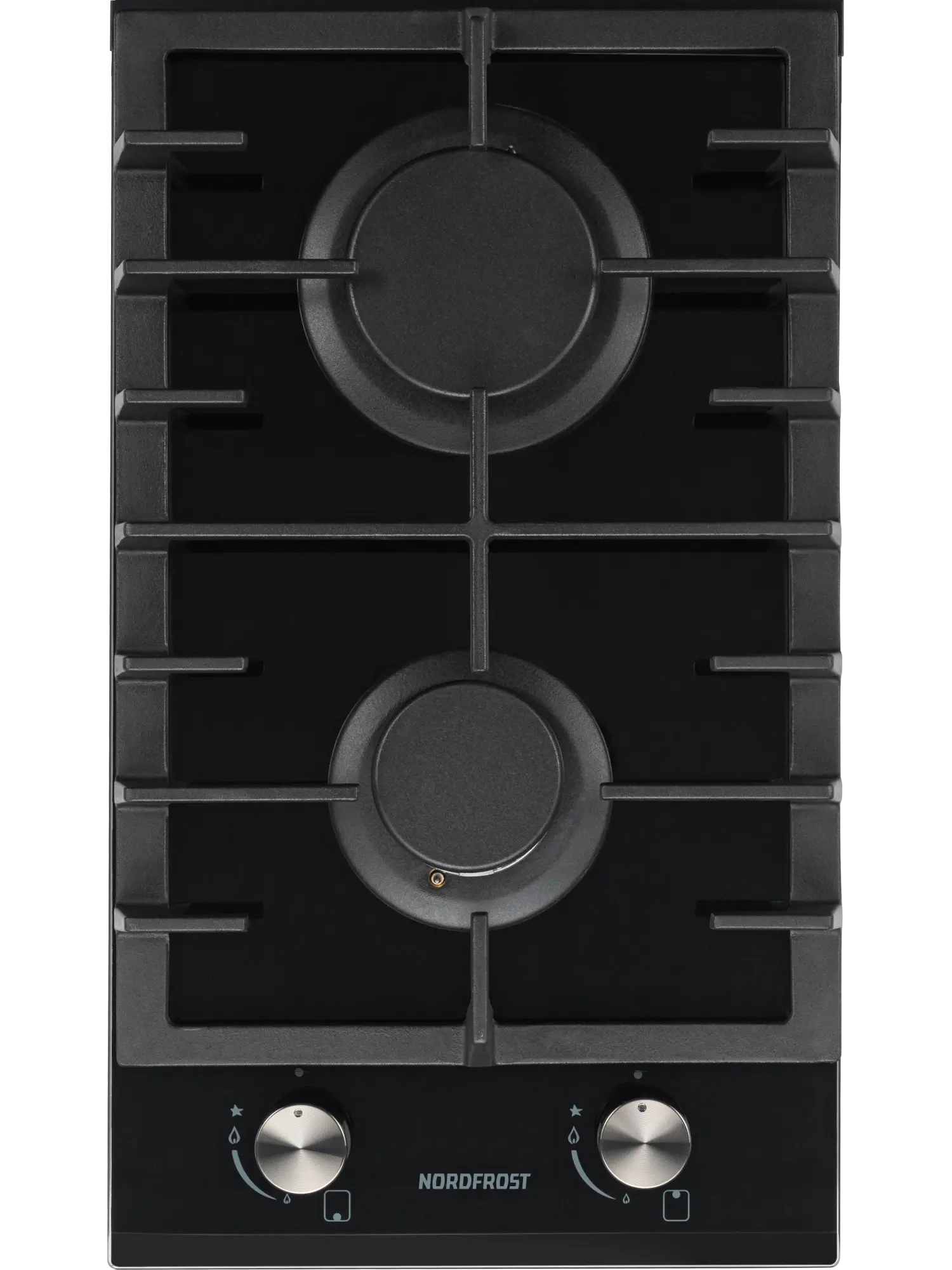 Газовая варочная поверхность Nord HM 3023 B выполнена из закаленного стекла в черном цвете, оснащена двумя конфорками с газовым подключением, функцией газ-контроль и автоматическим электророзжигом от ручек.