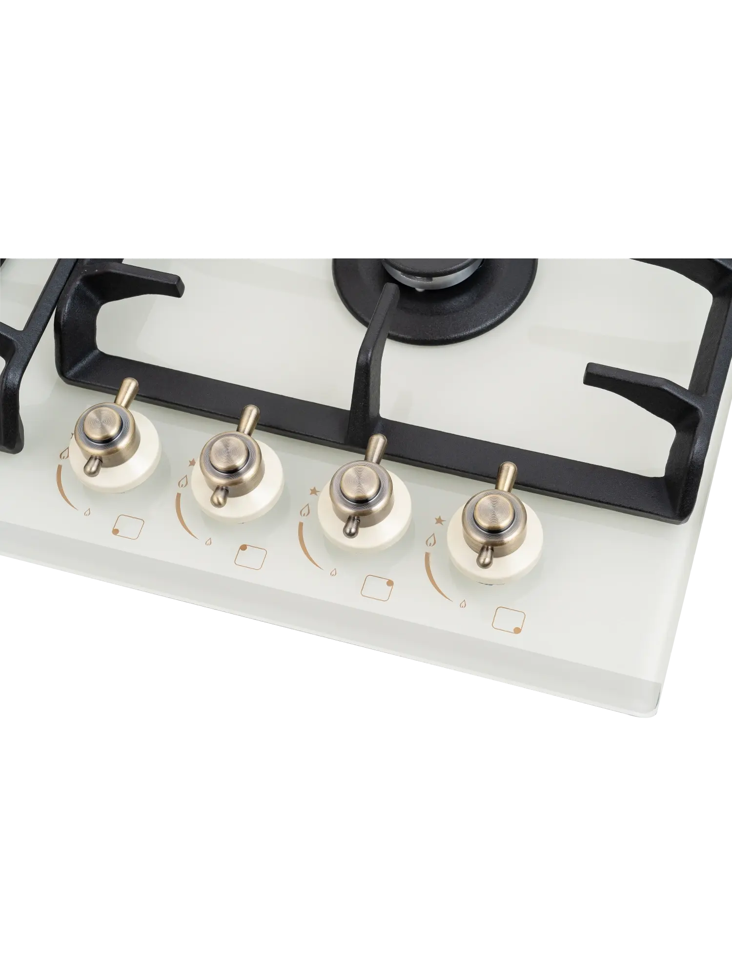 Газовая варочная поверхность Nord HM 6042 RY выполнена в стиле ретро из закаленного стекла в бежевом цвете, оснащена 4 конфорками с газовым подключением.