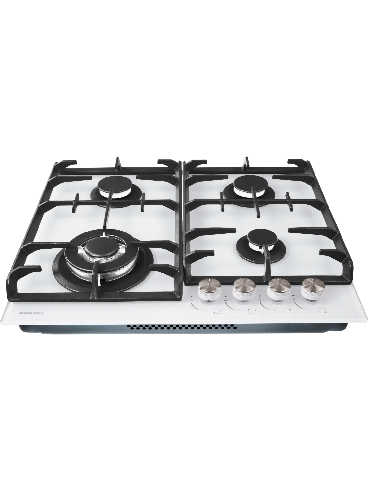 Газовая варочная поверхность Nord HM 6042 W выполнена из закаленного стекла в белом цвете, оснащена 4 конфорками с газовым подключением.