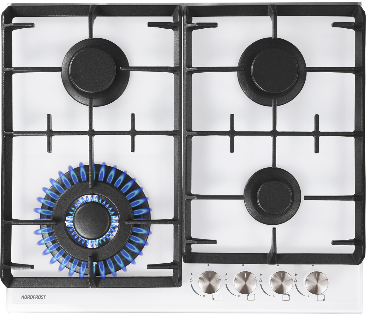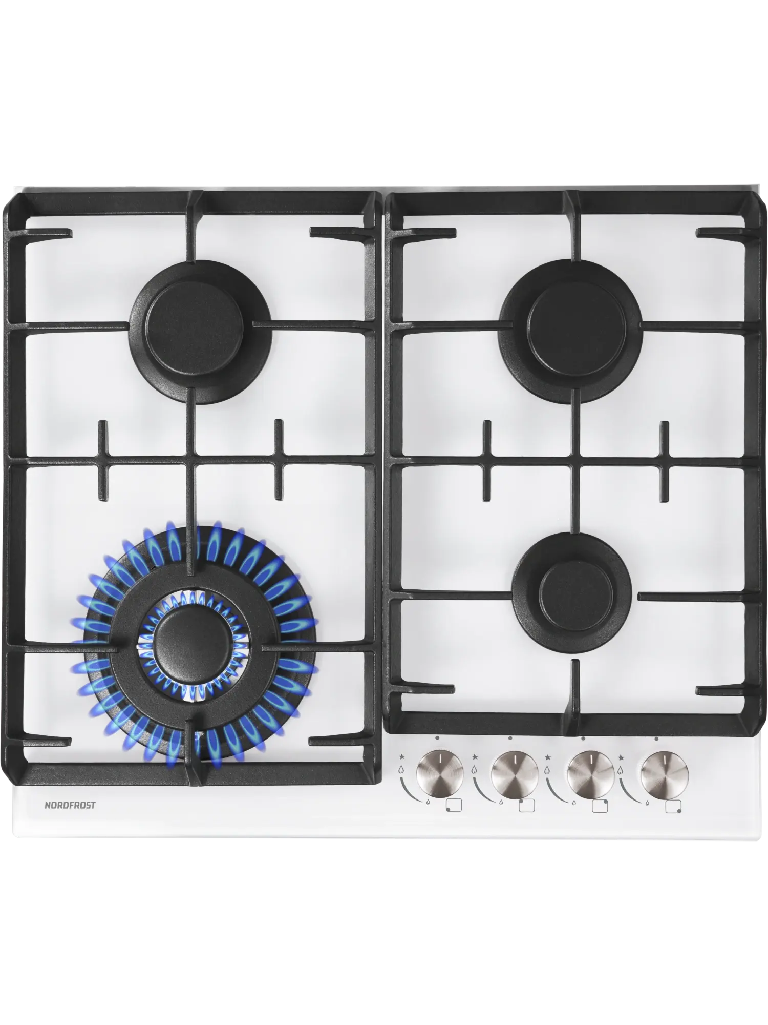 Газовая варочная поверхность Nord HM 6044 W выполнена из безопасного закаленного стекла в белом цвете, оснащена 4 конфорками с газовым подключением.