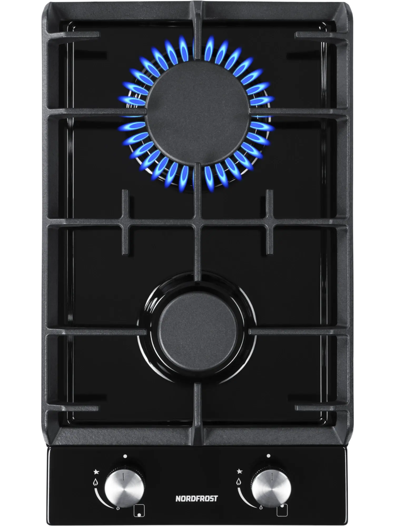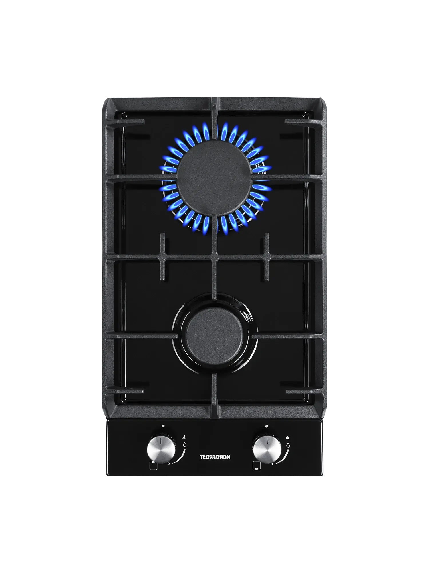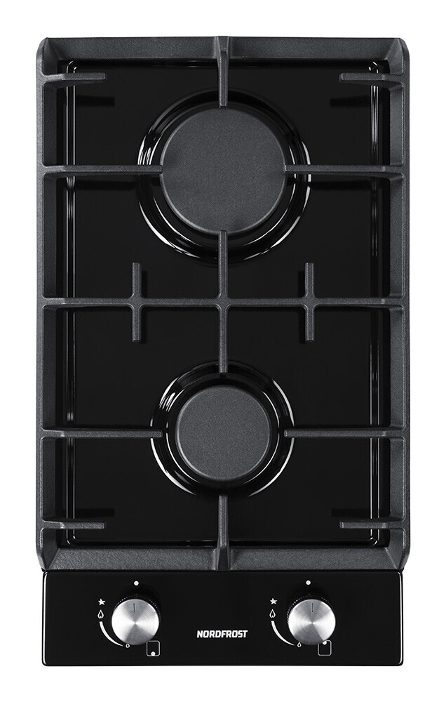 Газовая варочная поверхность HS 3022 B с 2-мя конфорками покрыта огнеупорной эмалью черного цвета.