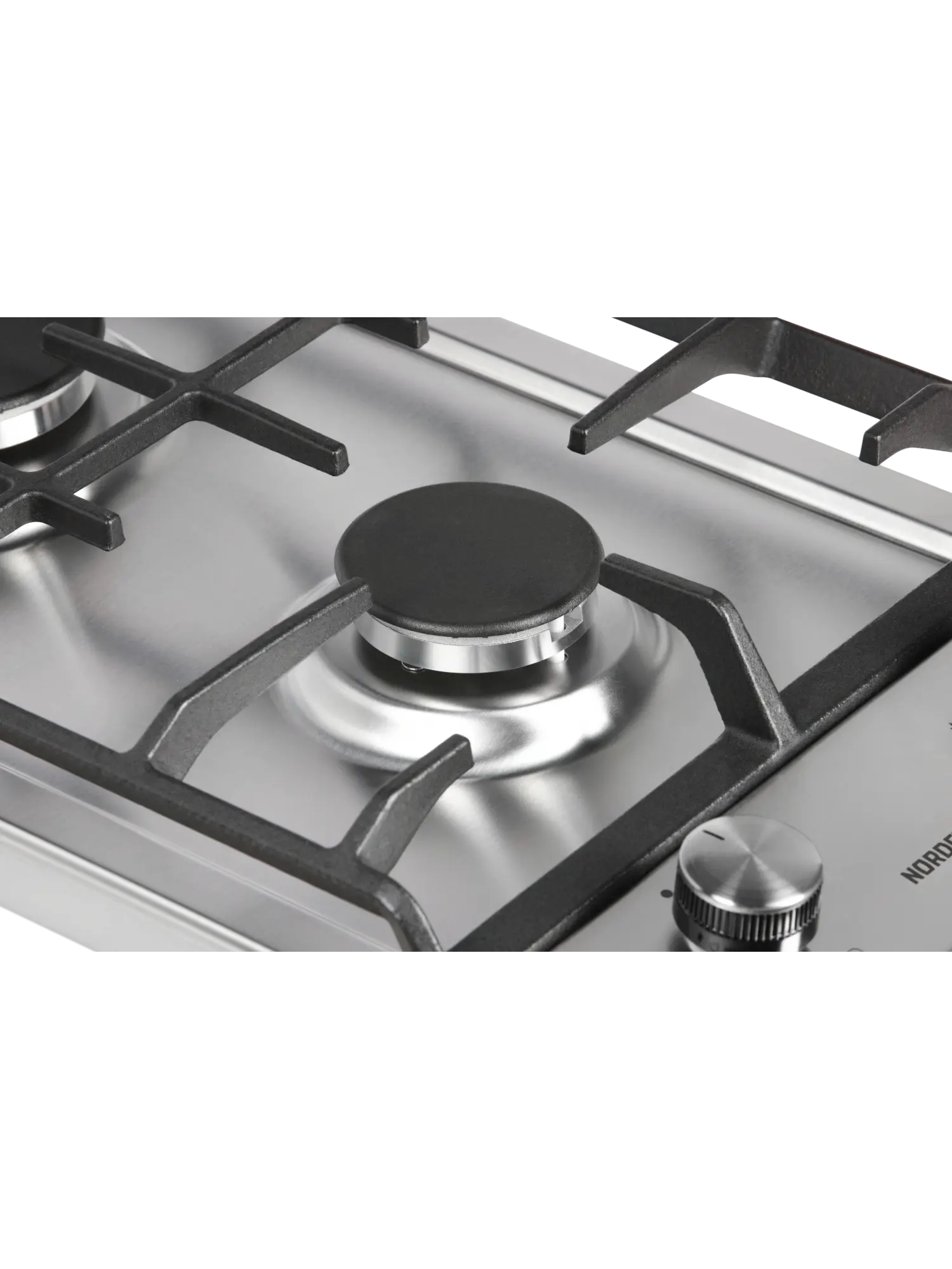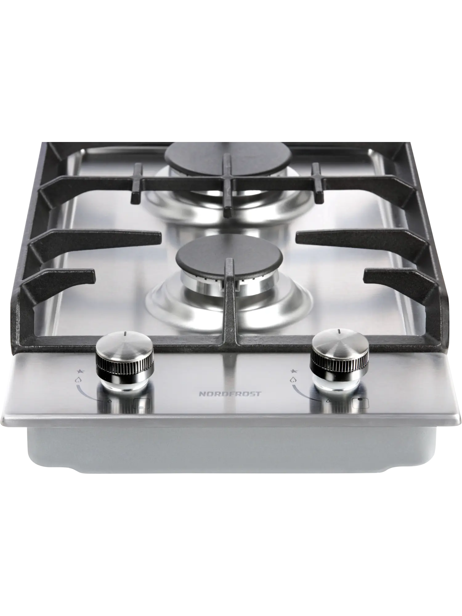 Газовая варочная поверхность HS 3022 X выполнена из нержавеющей стали и оснащена 2 конфорками.