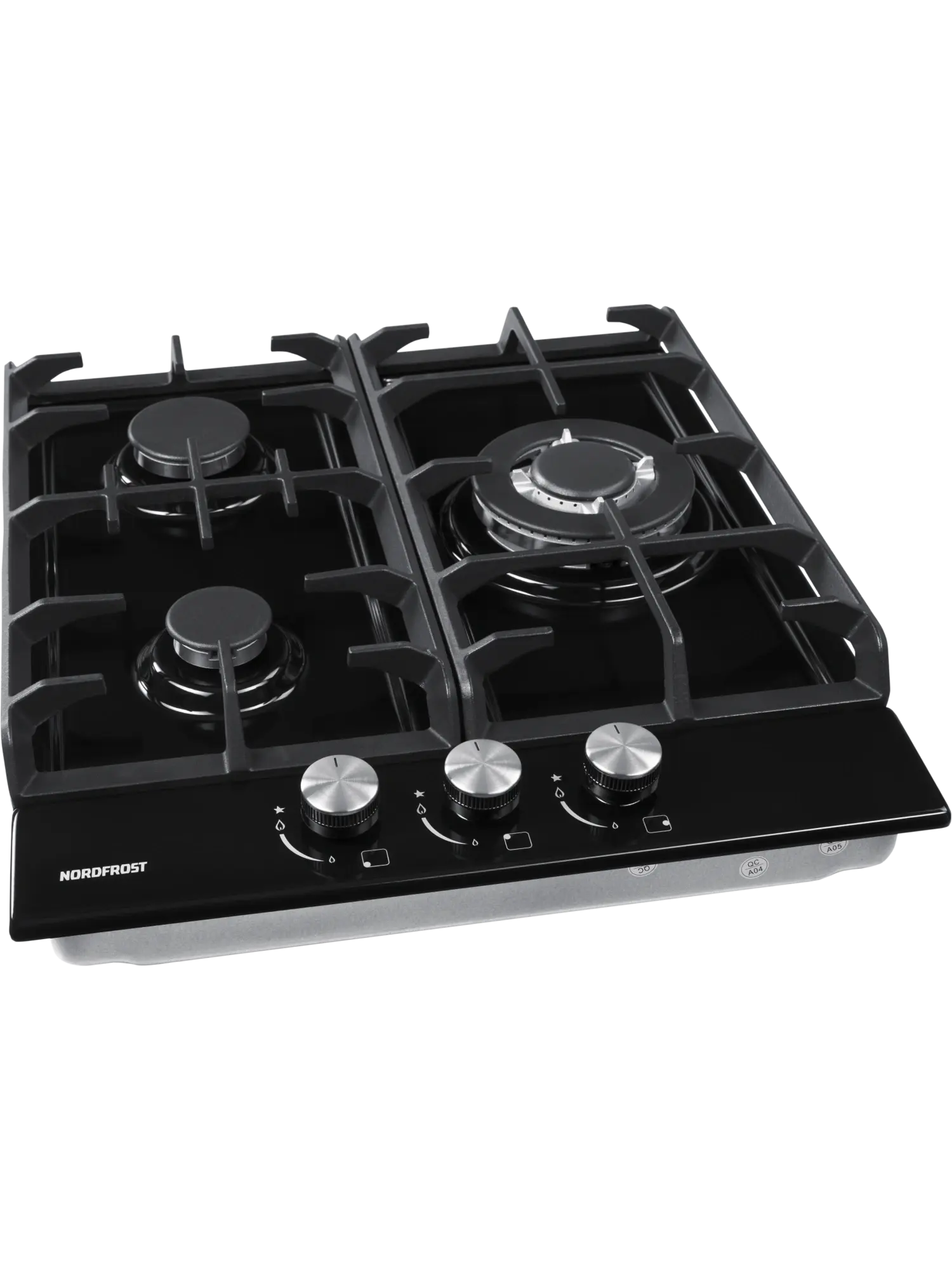 Газовая варочная поверхность HS 4532 B с 3-мя конфорками покрыта огнеупорной эмалью черного цвета.