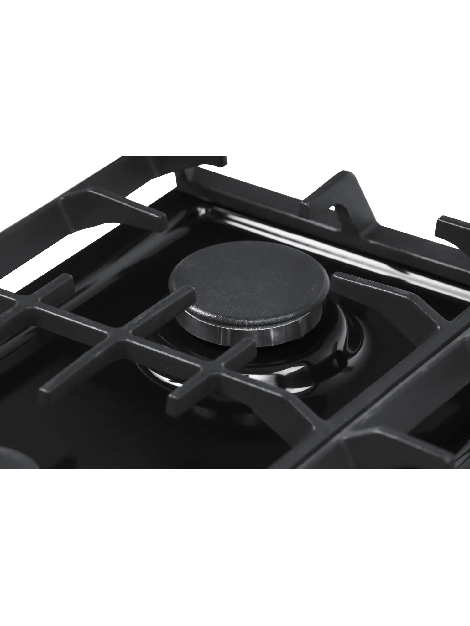 Поверх конфорок установлена облегченная чугунная решетка. Она имеет специальную форму, которая обеспечивает меньшую нагрузку на эмалированное покрытие, удобна в использовании и уходе.