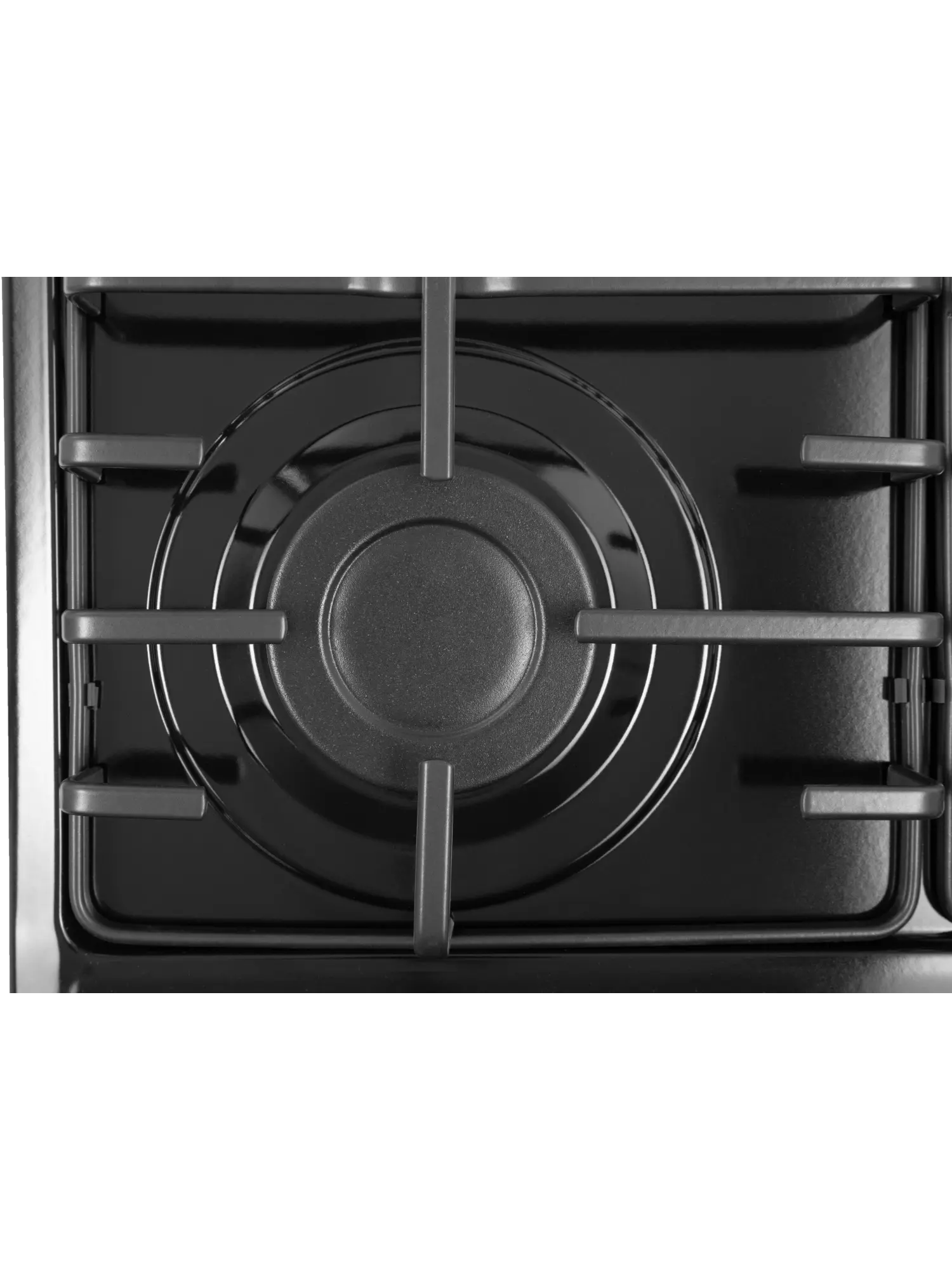 Поверх конфорок на варочной панели установлены широкие усиленные металлические решетки. Решетки устойчивы к перепадам температуры, удобны в использовании и уходе.