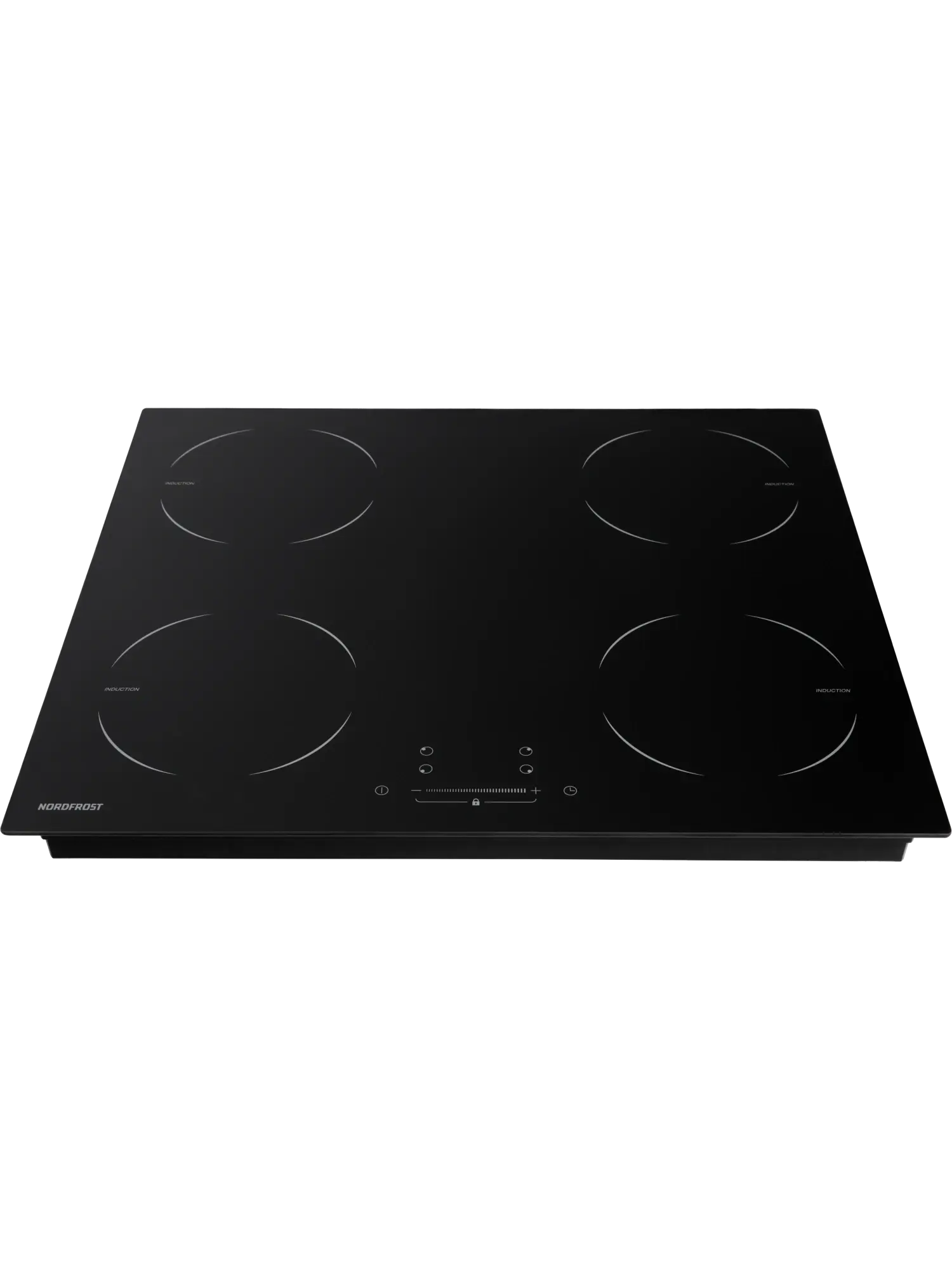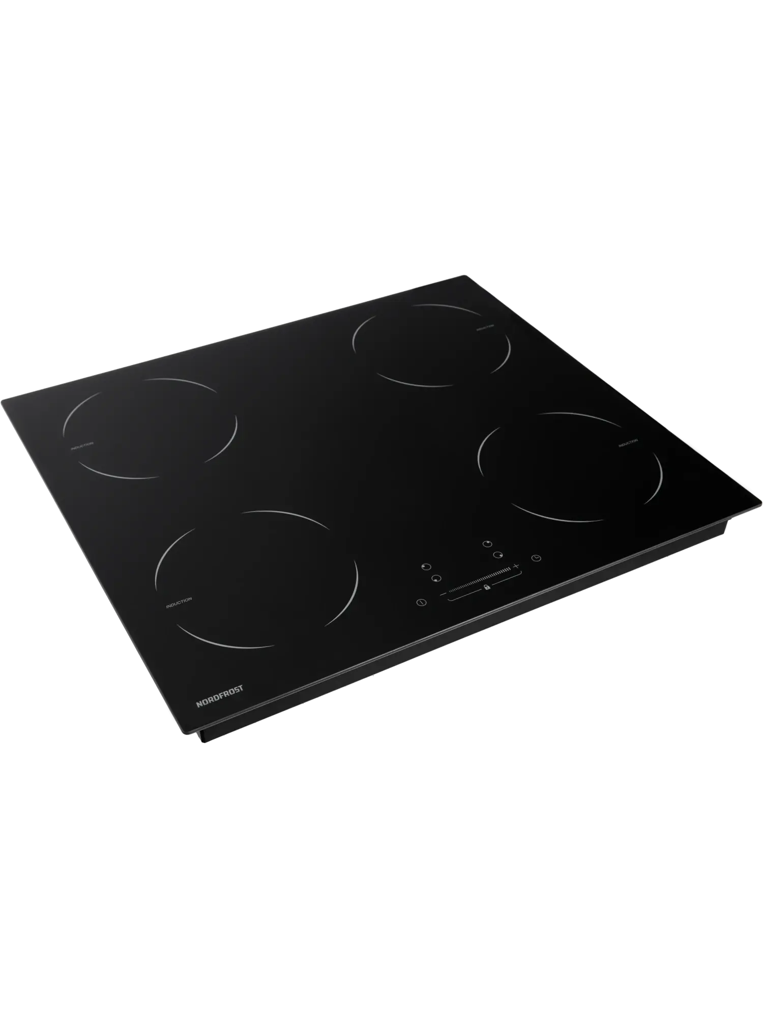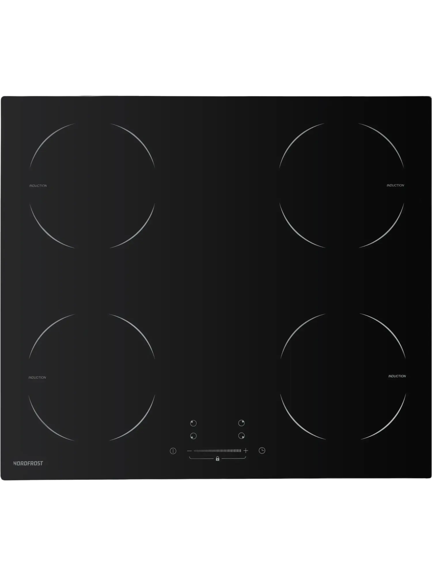 Встраиваемая индукционная варочная поверхность Nord i-M 6040 B выполнена из стеклокерамики Kanger и оснащена 4 конфорками с сенсорным управлением.