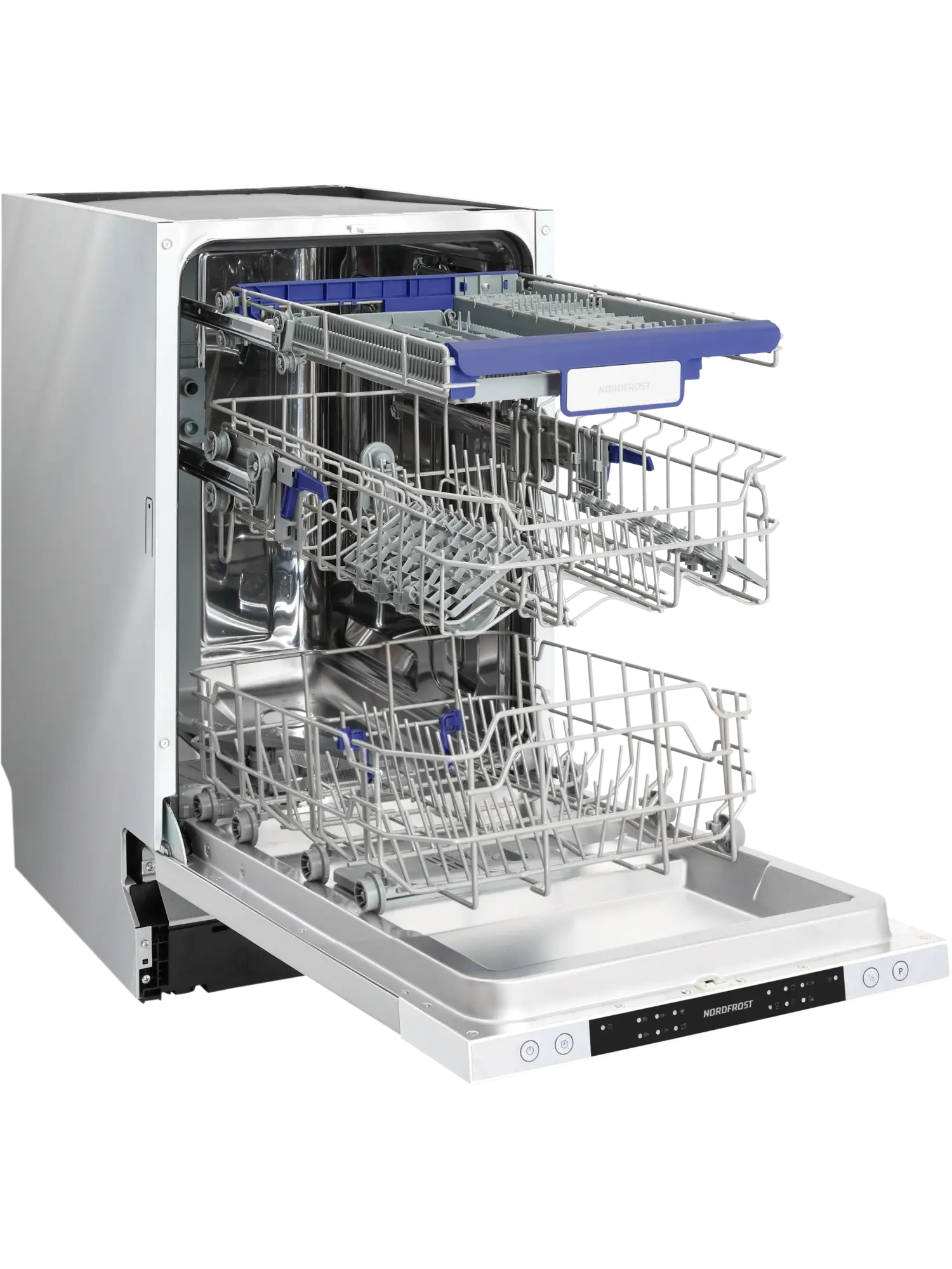 Встраиваемая посудомоечная машина Nord BI4 1063 шириной 45 см вмещает до 10 комплектов посуды. Техника позволит сэкономить время, обеспечит идеальную чистоту с минимальным потреблением воды и электроэнергии.