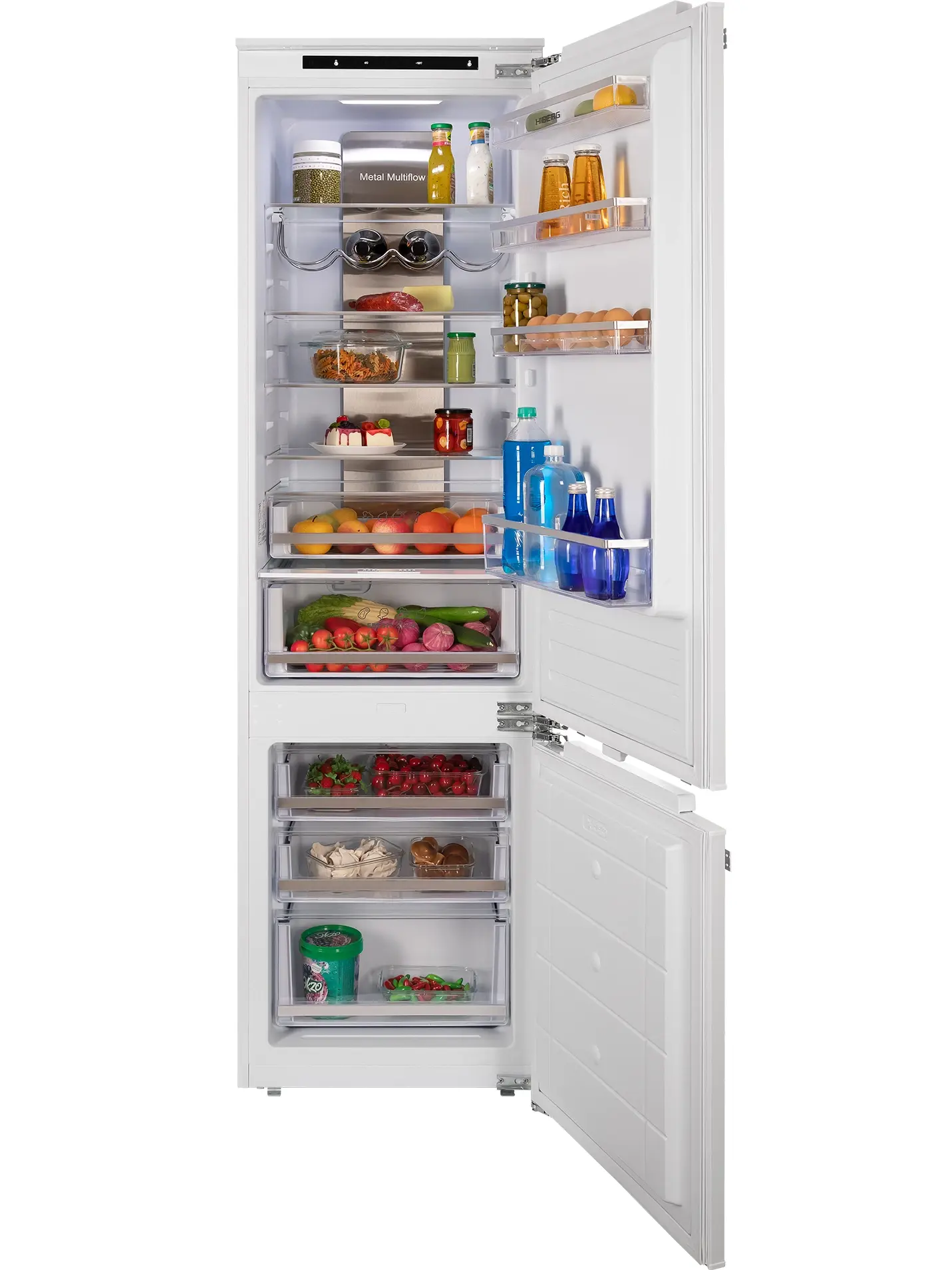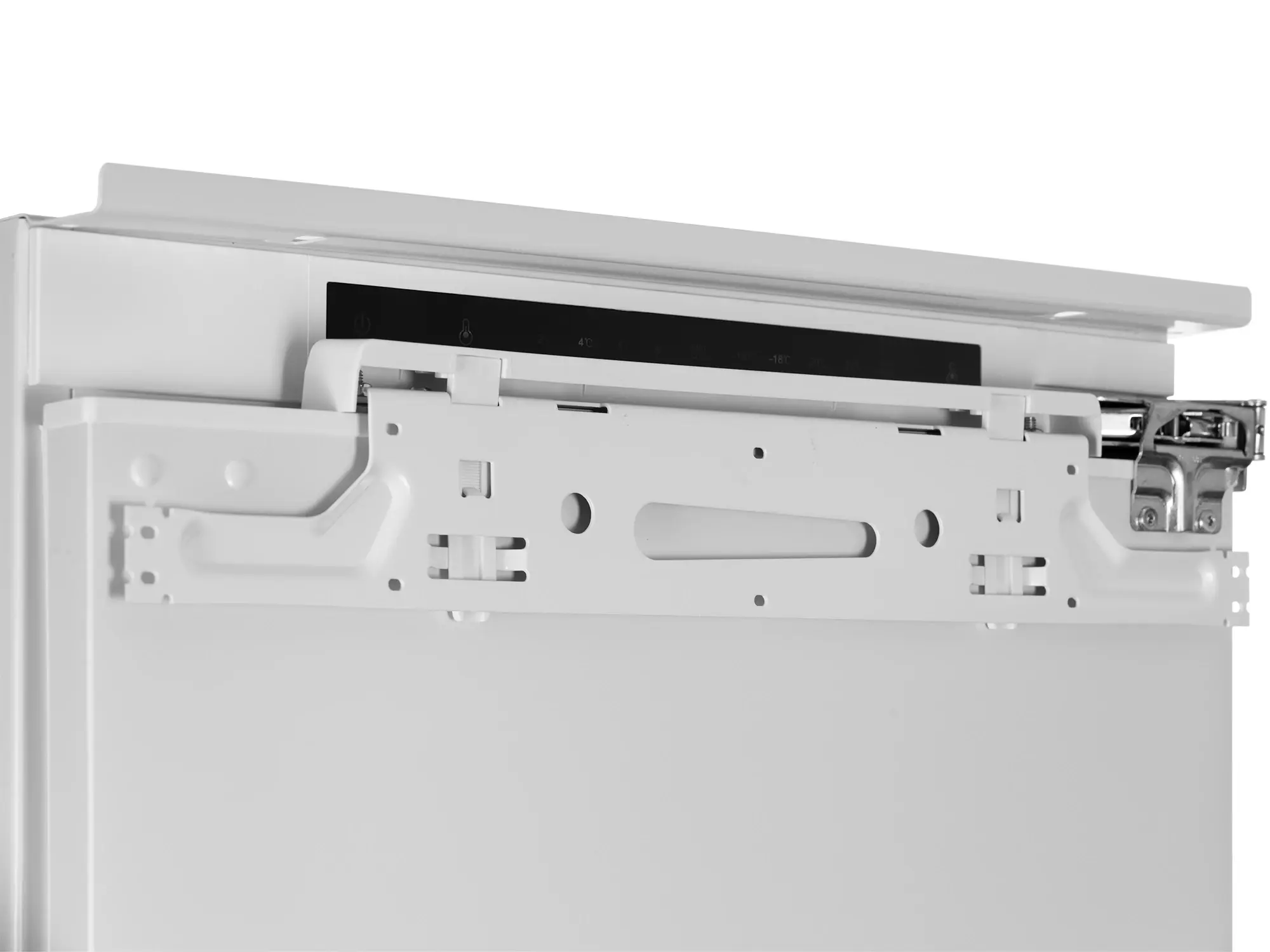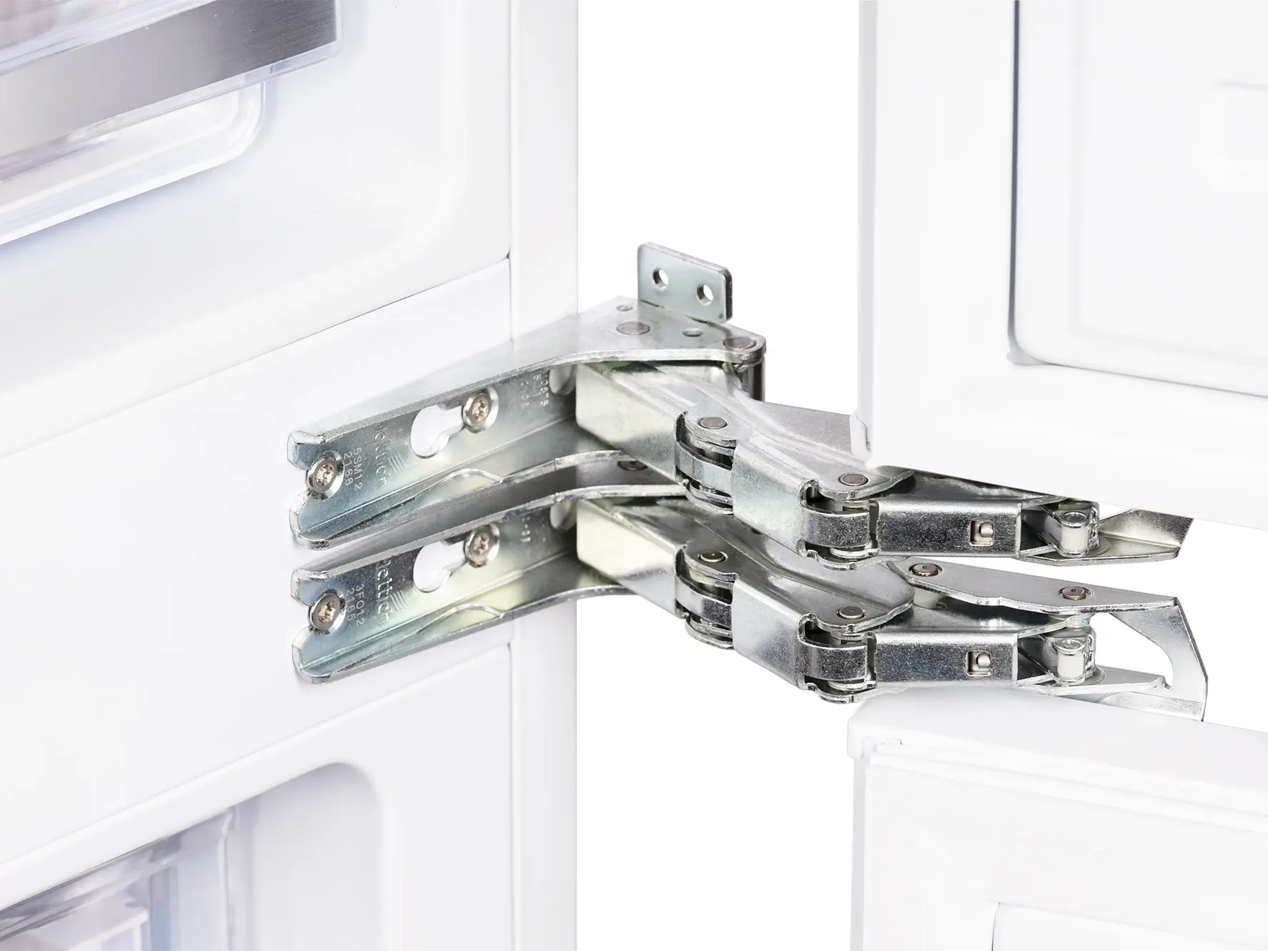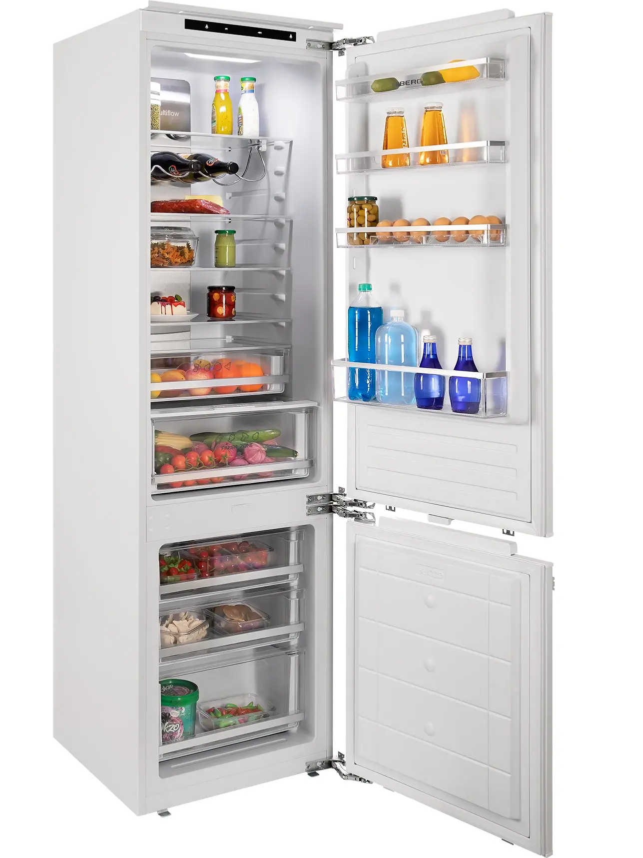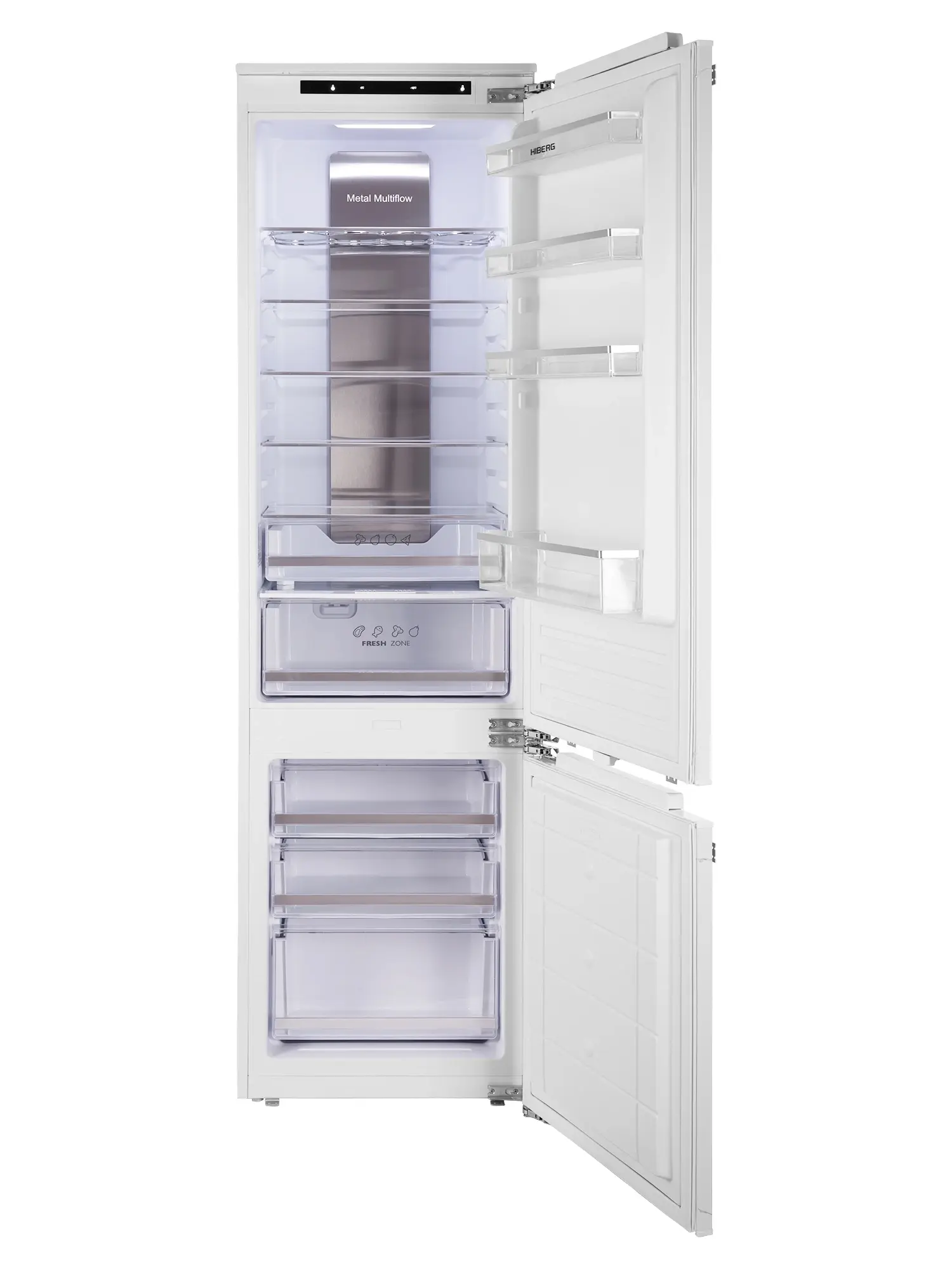Встраиваемый холодильник HIBERG i-RFCB 455F NFW с общим объемом 307 л идеально впишется в кухонный гарнитур, буквально «сливаясь» с ним, а возможность перенавешивания двери создает удобство открывания с нужной стороны. Инверторный компрессор обеспечивает низкий уровень шума до 41 дБ с минимальным энергопотреблением. Класс энергоэффективности А+. Система размораживания No Frost, которая навсегда освобождает пользователя от ручного размораживания. Технология Metal Cooling, при частом открытии двери, позволяет дольше удерживать холод внутри камеры. Оптимальная температура восстанавливается быстрее. Эргономика внутреннего пространства: - холодильная камера с полезным объемом 229 л - морозильная камера объемом 64 л. Нижний ящик повышенного объема, что позволяет поместить и длительно хранить большие куски мяса, курицу целиком и другие объемные замороженные продукты. Холодильник оснащен LED-освещением только в холодильной камере и электронной панелью управления, с помощью которой можно установить точную температуру или выбрать необходимый режим.