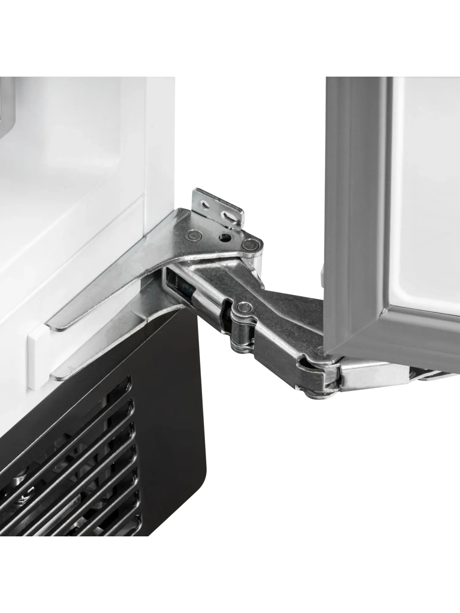 Полезного объема 607 литров достаточно, чтобы вместить недельный запас продуктов для большой семьи, при этом холодильник максимально сохранит их свежесть и полезные свойства. Фасады прибора имеют жесткую систему крепления: они не связаны с корпусом шкафа, отсутствуют дополнительные петли. За счет этого угол открывания дверей не ограничен, нет зазоров, где могла бы скапливаться пыль и грязь.